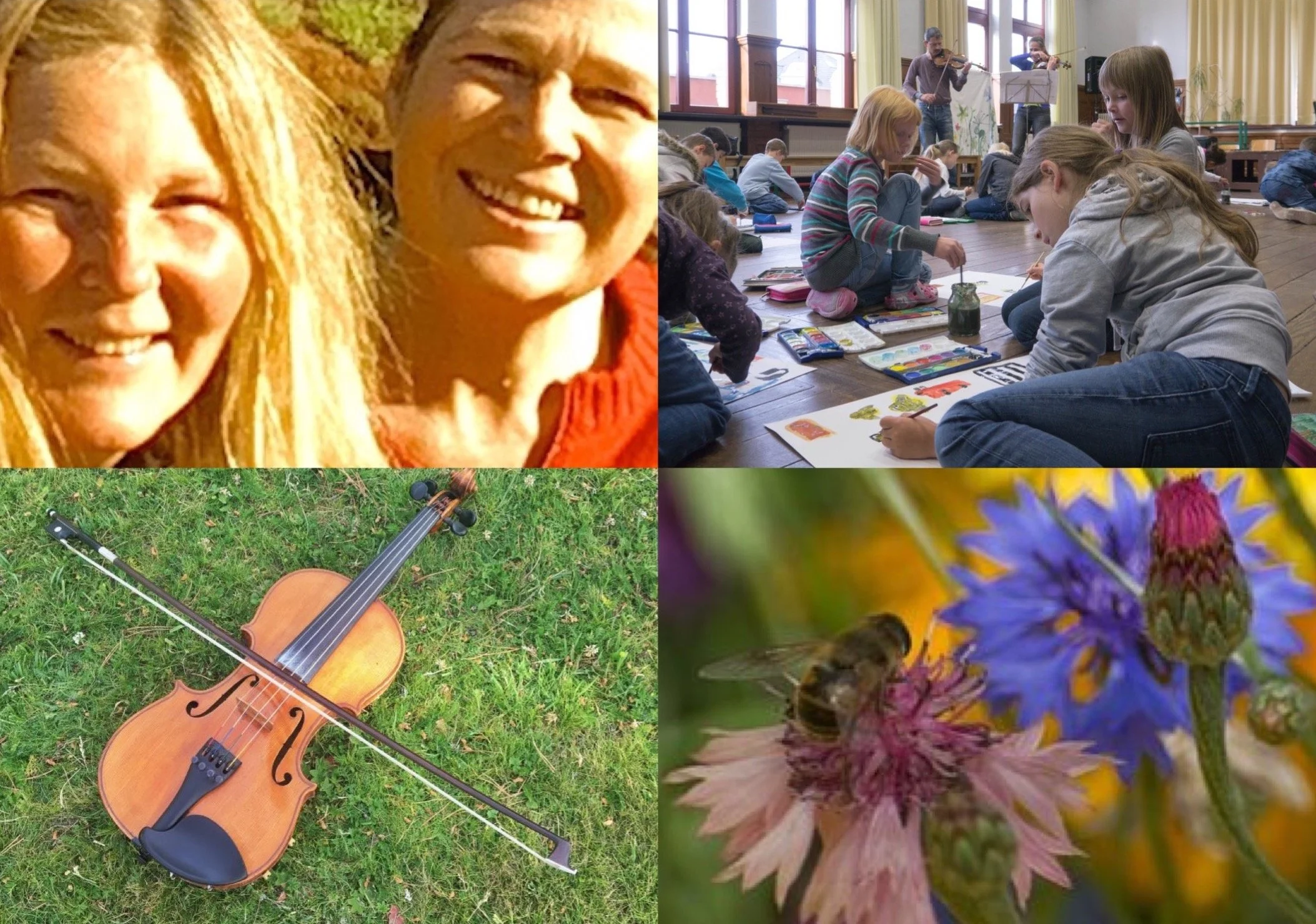 3) Det är dags att skapa Musik till vilda bin. Vad ska den berätta och hur? Barnen får lyssna på ljuden de spelat in. Det finns också instrument att spela på själva och de egna rösterna, och violan förstås.