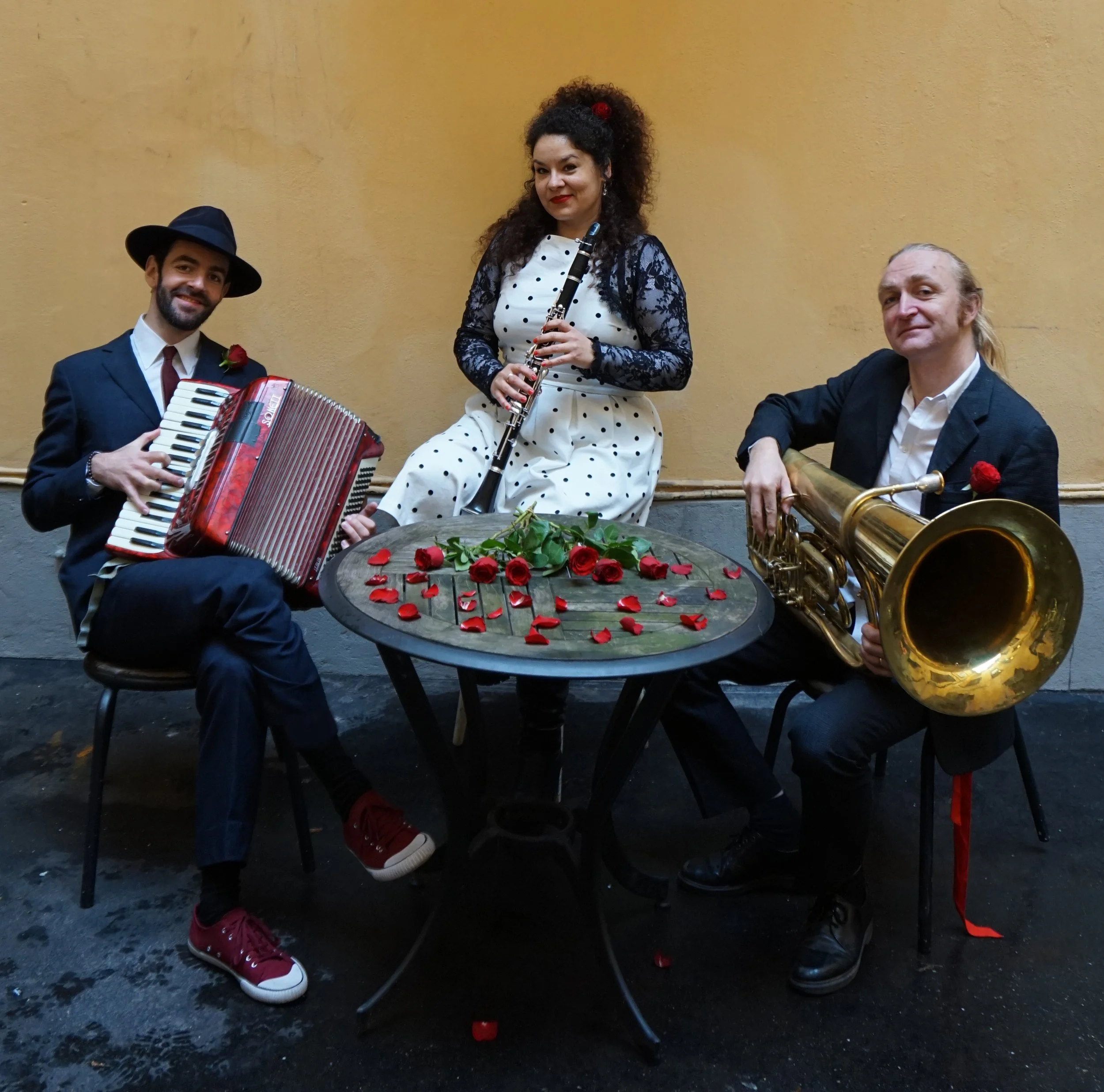 Hennes band kan uppträda som en trio (klarinett, dragspel, tuba), som en kvintett (med trummor och ytterligare ett melodiskt instrument), eller som en septett (klarinett, trumpet, fiol, viola, dragspel, tuba, trummor) och kommer säkerligen att tillföra ditt evenemang en glad och sentimental atmosfär dränkt av danser och stampande fötter!